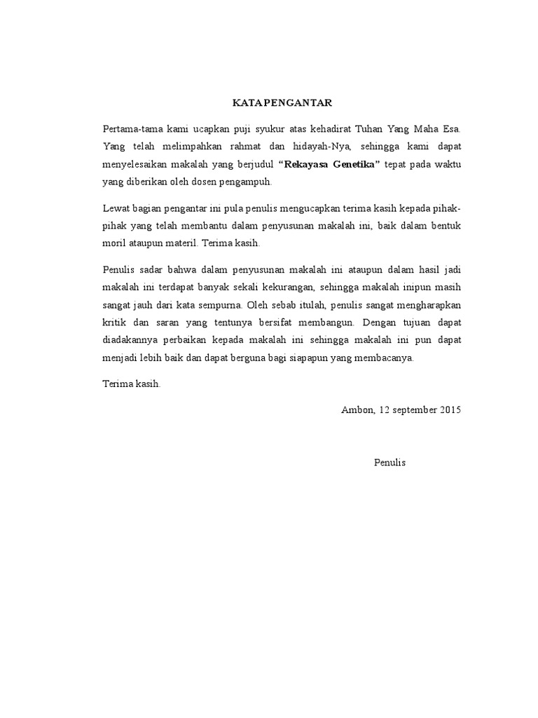 Contoh kata pengantar. Segala puja hanya bagi allah yang maha pengasi lagi maha penyayang. Karena makalah atau laporan akan. Contoh kata pengantar kata pengantar adalah halaman pada karya tulis yang berisi ucapan dari penyusun atas selesainya penulisan karya tulis tersebut umumnya berisi ucapan rasa terima kasih ucapan rasa syukur juga tujuan dan manfaat penulisan serta meminta kritik dan saran yang membangun.
