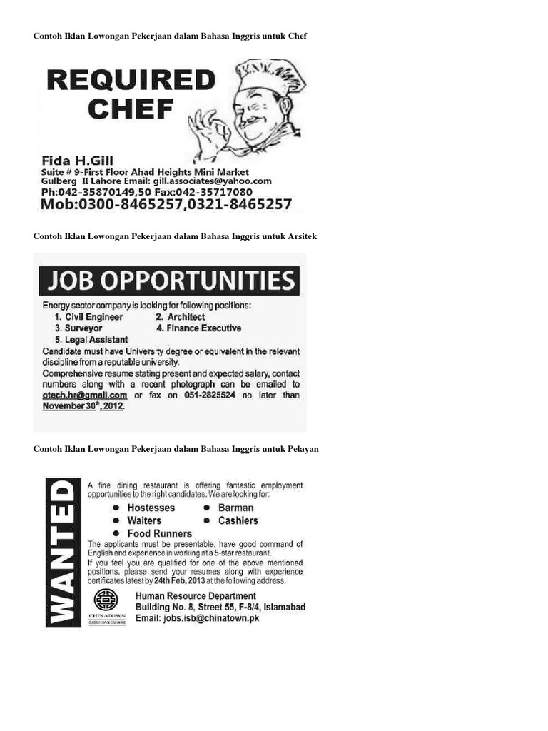 Contoh Iklan Lowongan Kerja Dalam Bahasa Inggris Doc