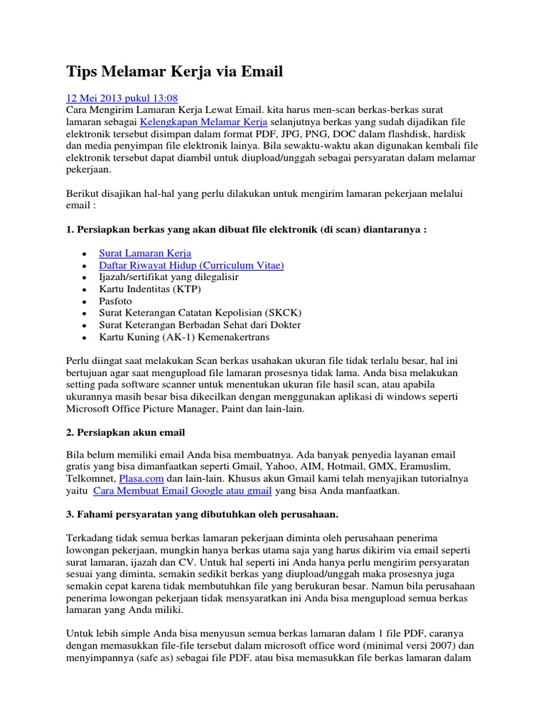 Cara Mengirim Email Lamaran Kerja Dengan Format Pdf